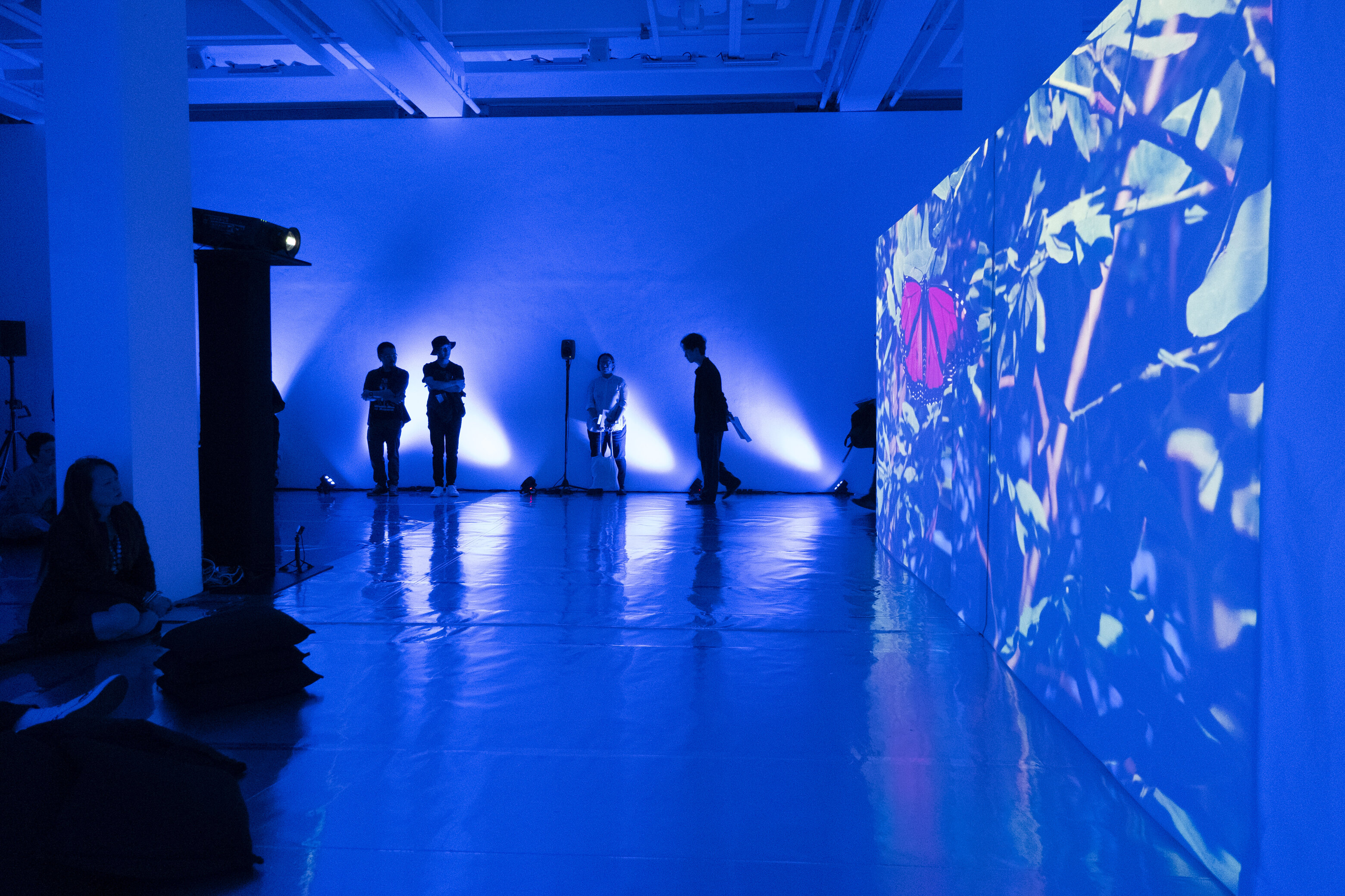 Through the glass, darkly is a “non-performance” on voice and communication, a single time-intensive event which discusses different positions toward speaking, being silenced, the possibility to find words and to resonate. The work emerged through reflections on the (im)possibility of language, failure of human voices, disruption of direct utterance, alternative transmission, to form a libretto - manoeuvring the story of “The Diving Bell and The Butterfly”, Monarch butterflies, personal encounters and more - set to a choreography of sound and music.